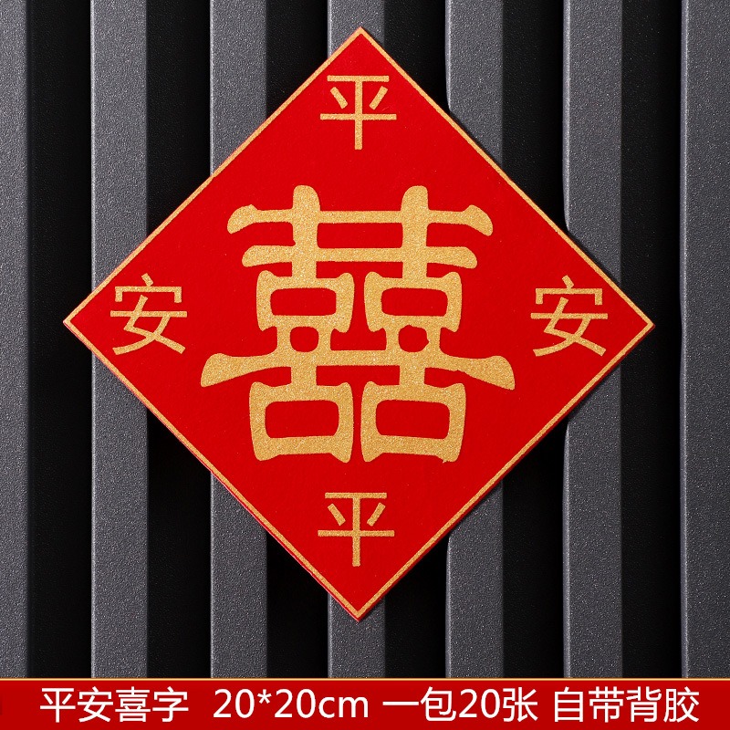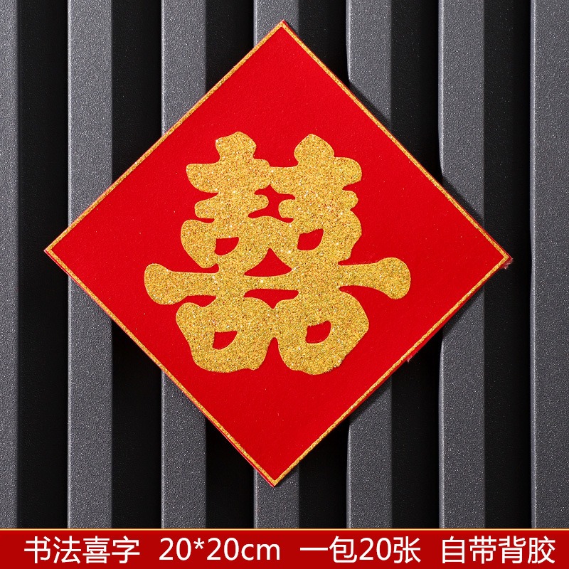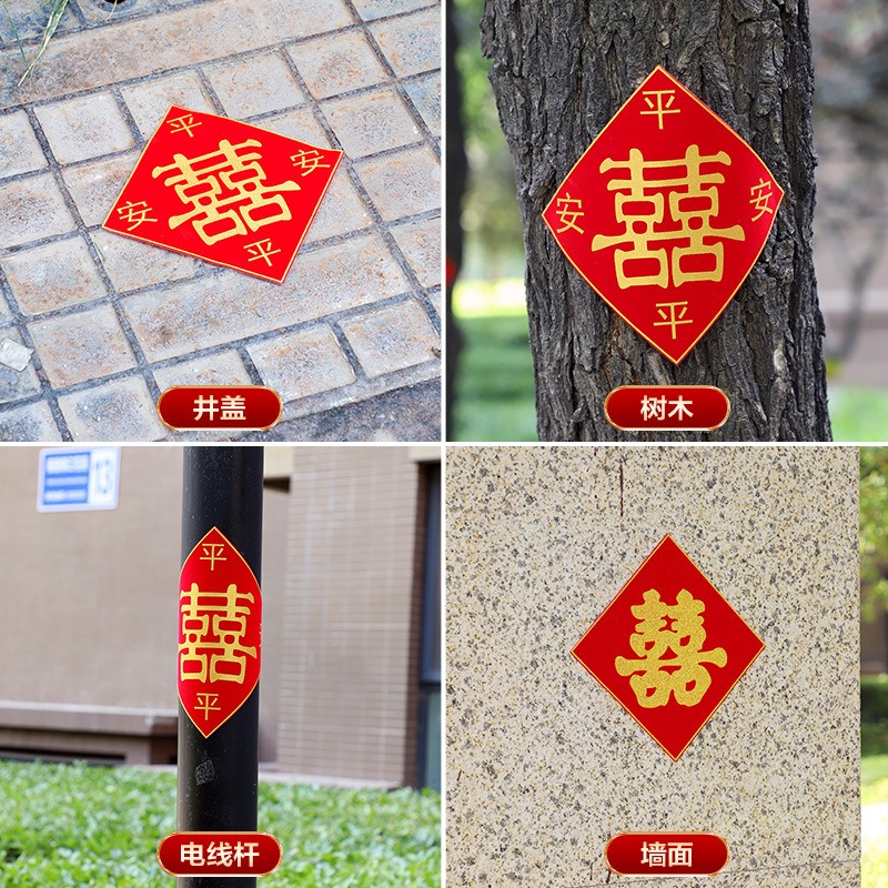 井盖喜结婚喜字自粘引路喜字贴红纸植绒布囍字婚庆用品压井墙面