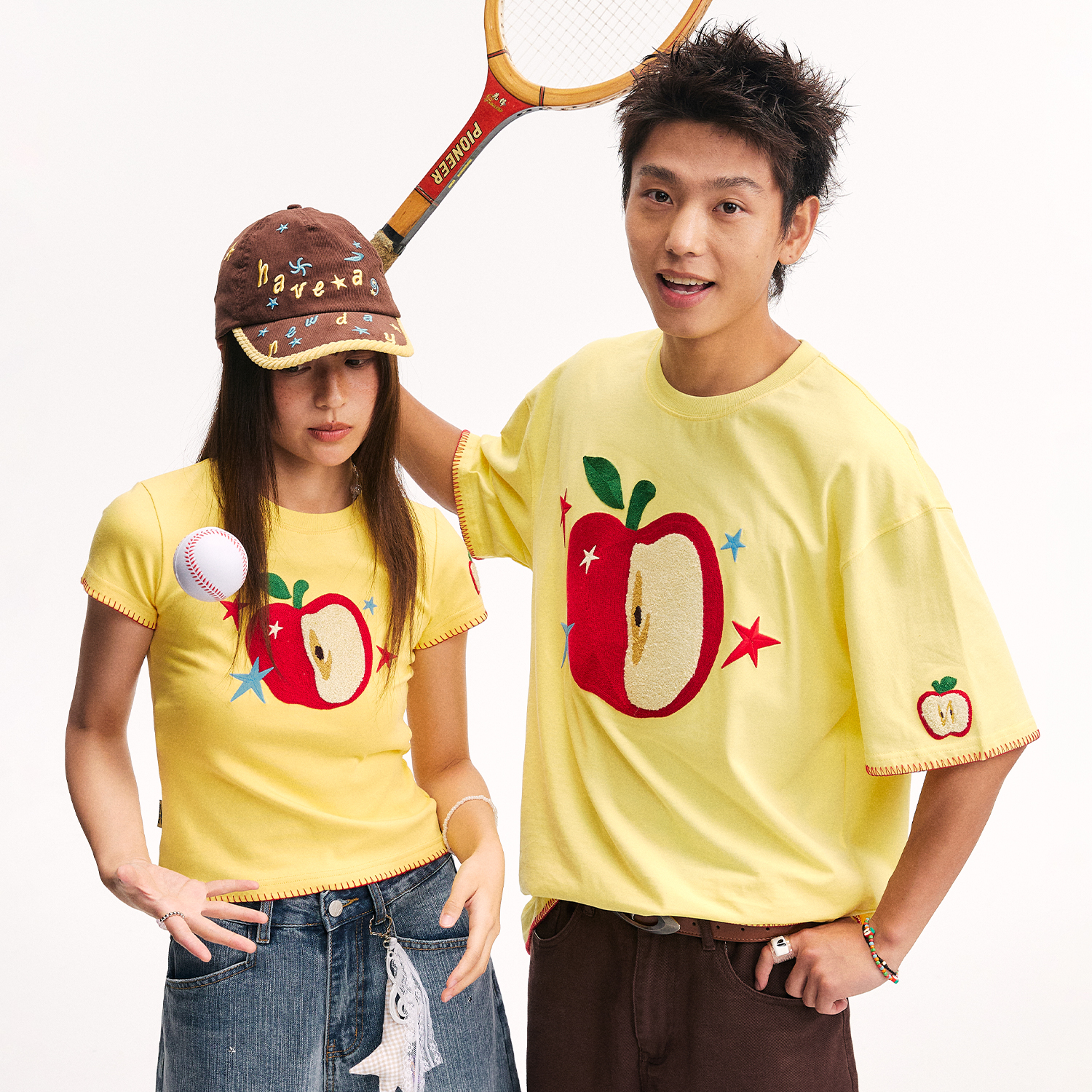 刺绣苹果上衣男女潮牌t 修身 江南先生NewJNXS凉感冰皮短袖 T恤夏季