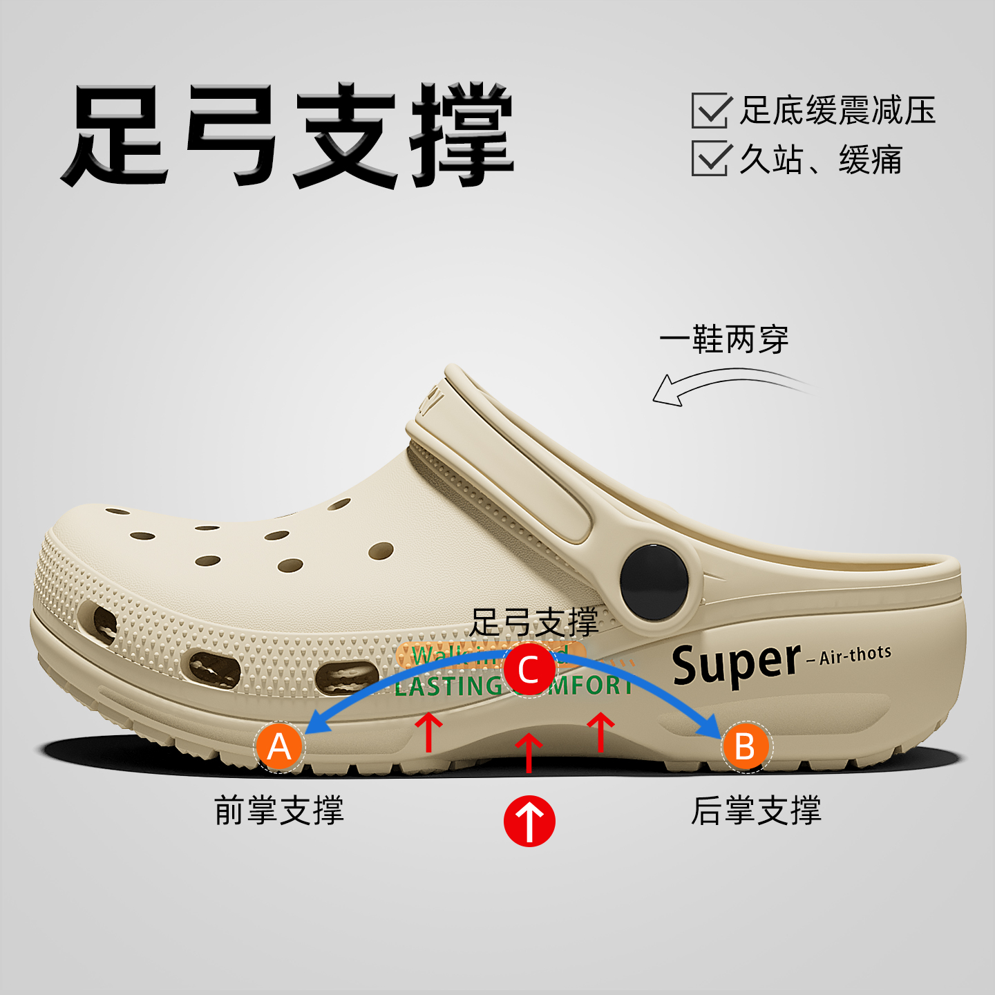 夏季 2025新款 外穿久站不累脚防滑防臭凉拖 男款 足弓支撑专用洞洞鞋