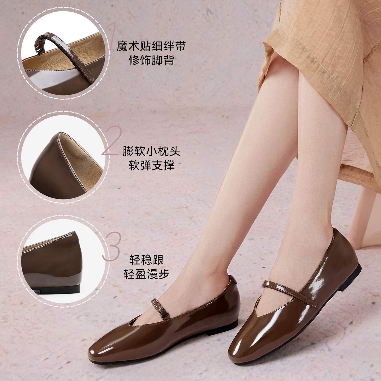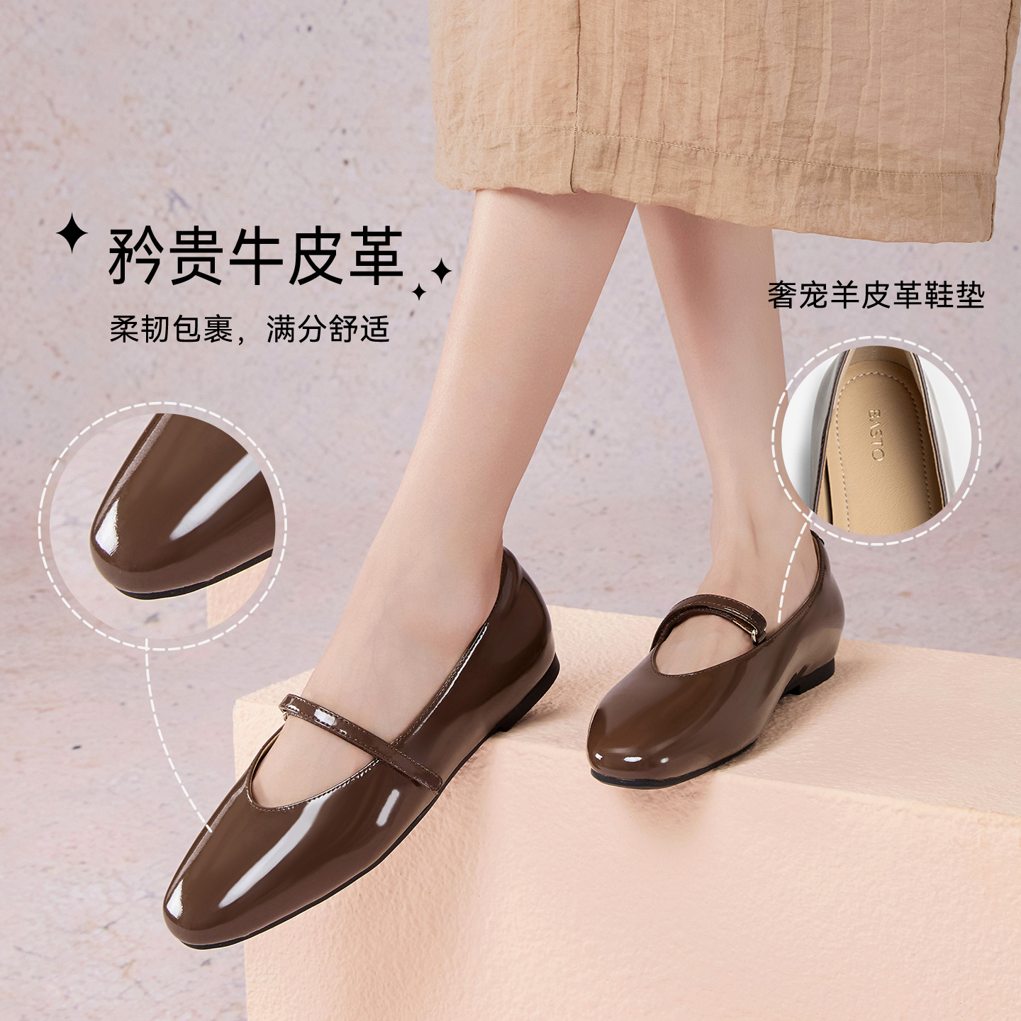 女 羊皮芭蕾玛丽珍单鞋 董洁董璇小酒窝同款 真美诗摩卡慕斯25秋新款