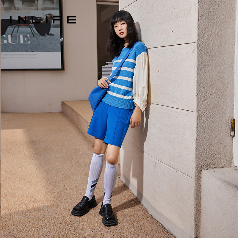 早春新款 女短款 2025上衣慵懒宽松条纹毛衣 假两件针织衫 伊纳芙春季