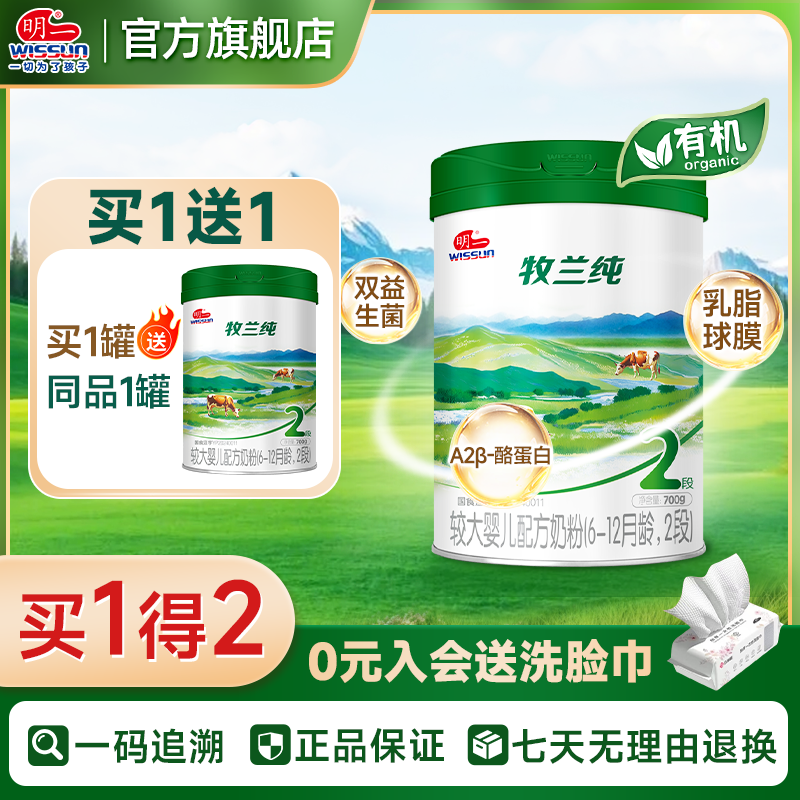 12月龄有机婴幼儿配方奶粉700g 明一奶粉牧兰纯2段6 罐 买1送1