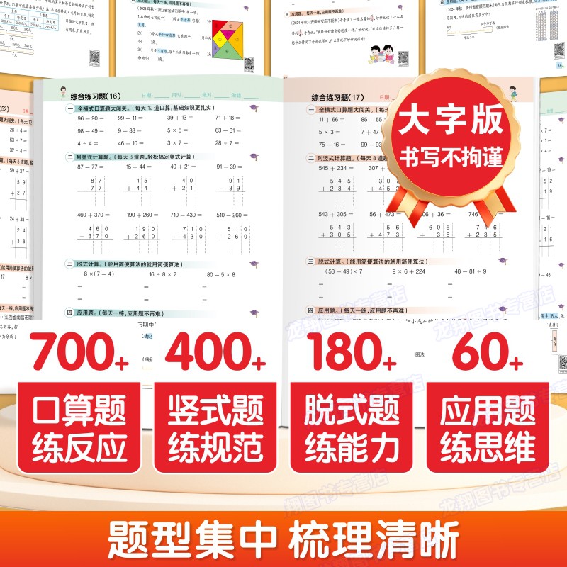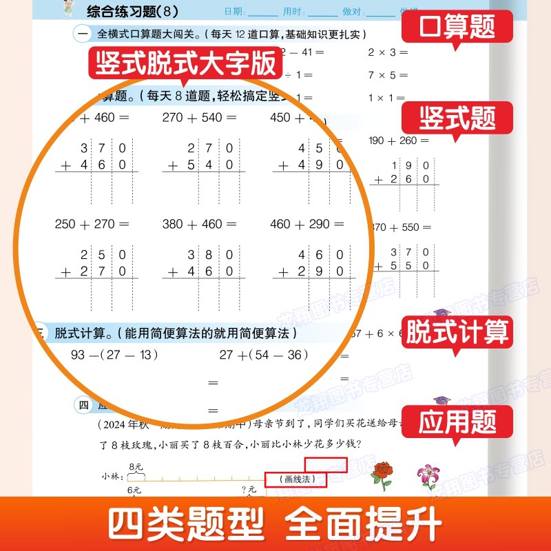 计算题应用题四合一专项强化训练计算能手同步练习册 脱式 2025新小学一二三四五六年级数学口算题卡上册下册口算天天练人教版 竖式