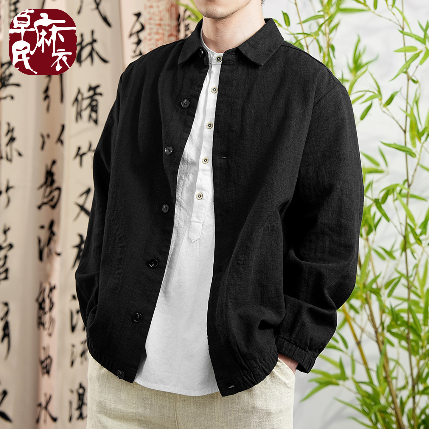 新中式 衬衫 上衣2025新款 中老年人男士 中年爸爸秋装 衬衣中山装 长袖