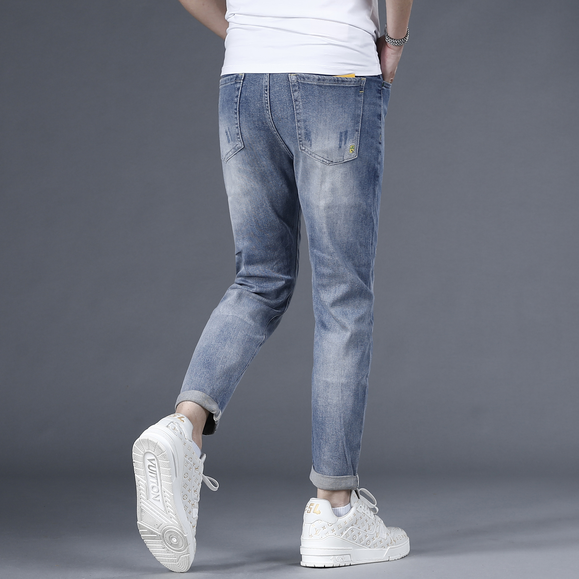 中腰牛仔长裤 男式 18115602 男洗水猫须直筒裤 佐丹奴冰氧凉感牛仔裤
