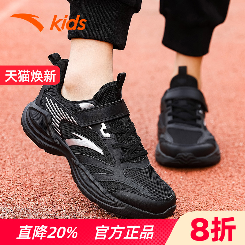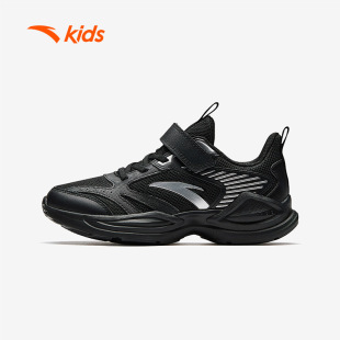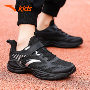 大童青少年休闲鞋 安踏童鞋 黑色儿童跑步鞋 2025夏季 男童网面运动鞋