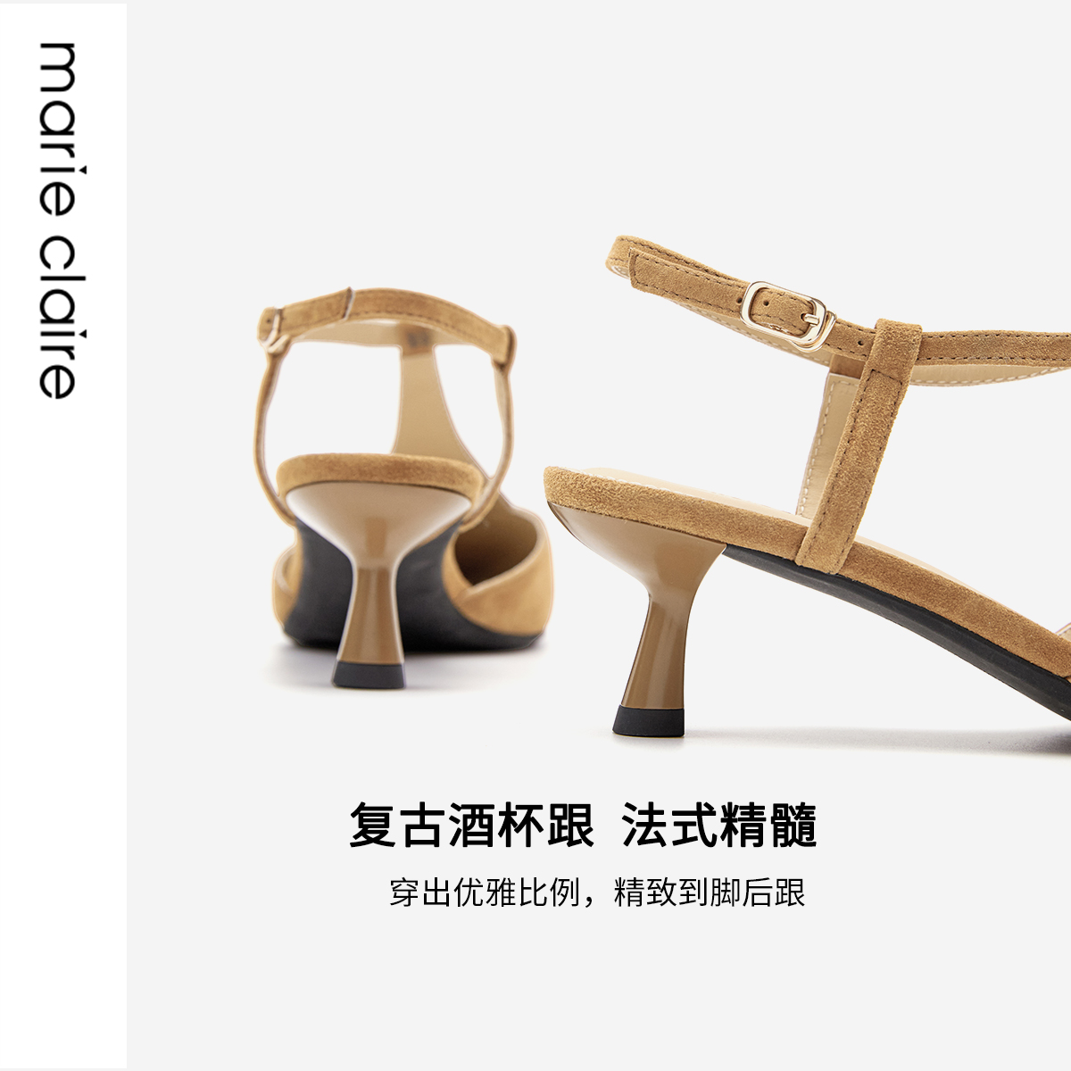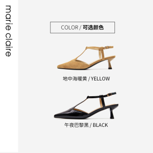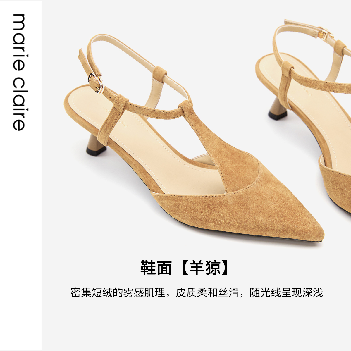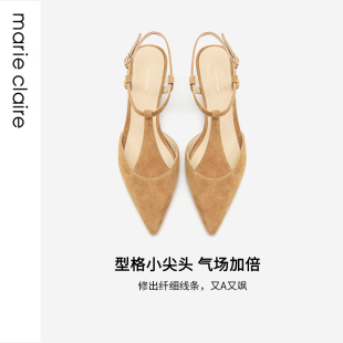羊皮复古高跟鞋 春新款 尖头后空细跟凉鞋 MC女鞋