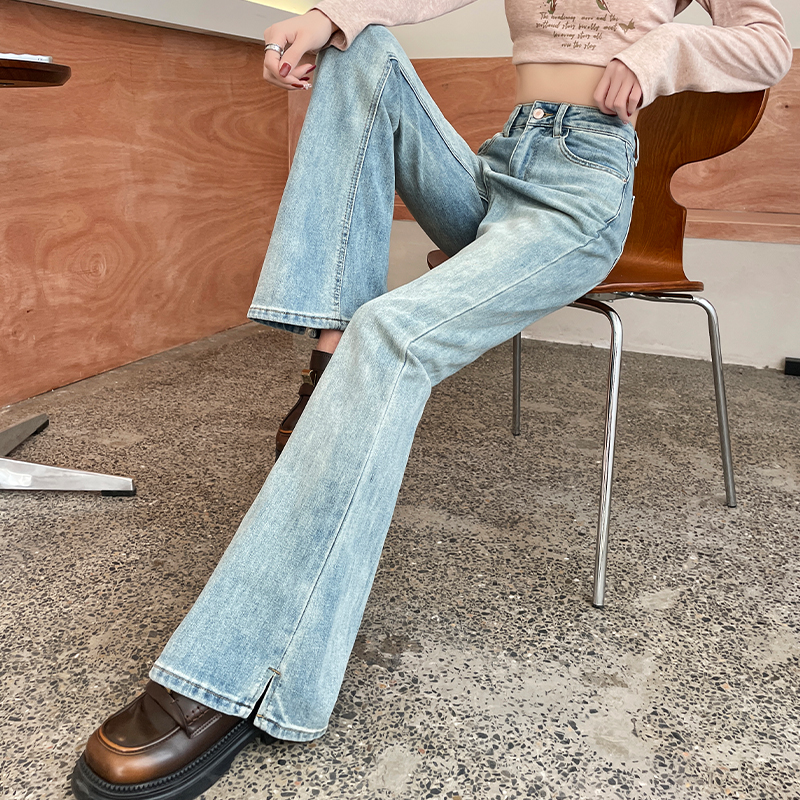 子 高腰加长高个子开叉马蹄喇叭裤 浅蓝色微喇牛仔裤 女2025春秋新款