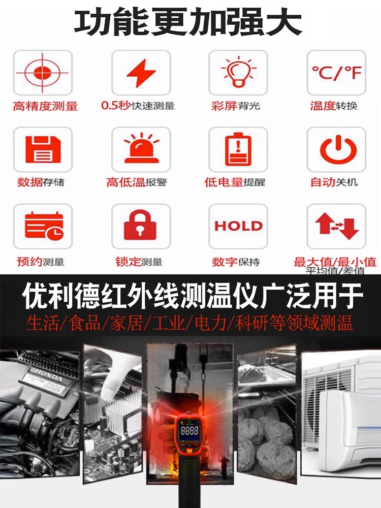 测温枪工业高精度油温枪红外测温仪UT302C 优利德高精度EBTN彩屏
