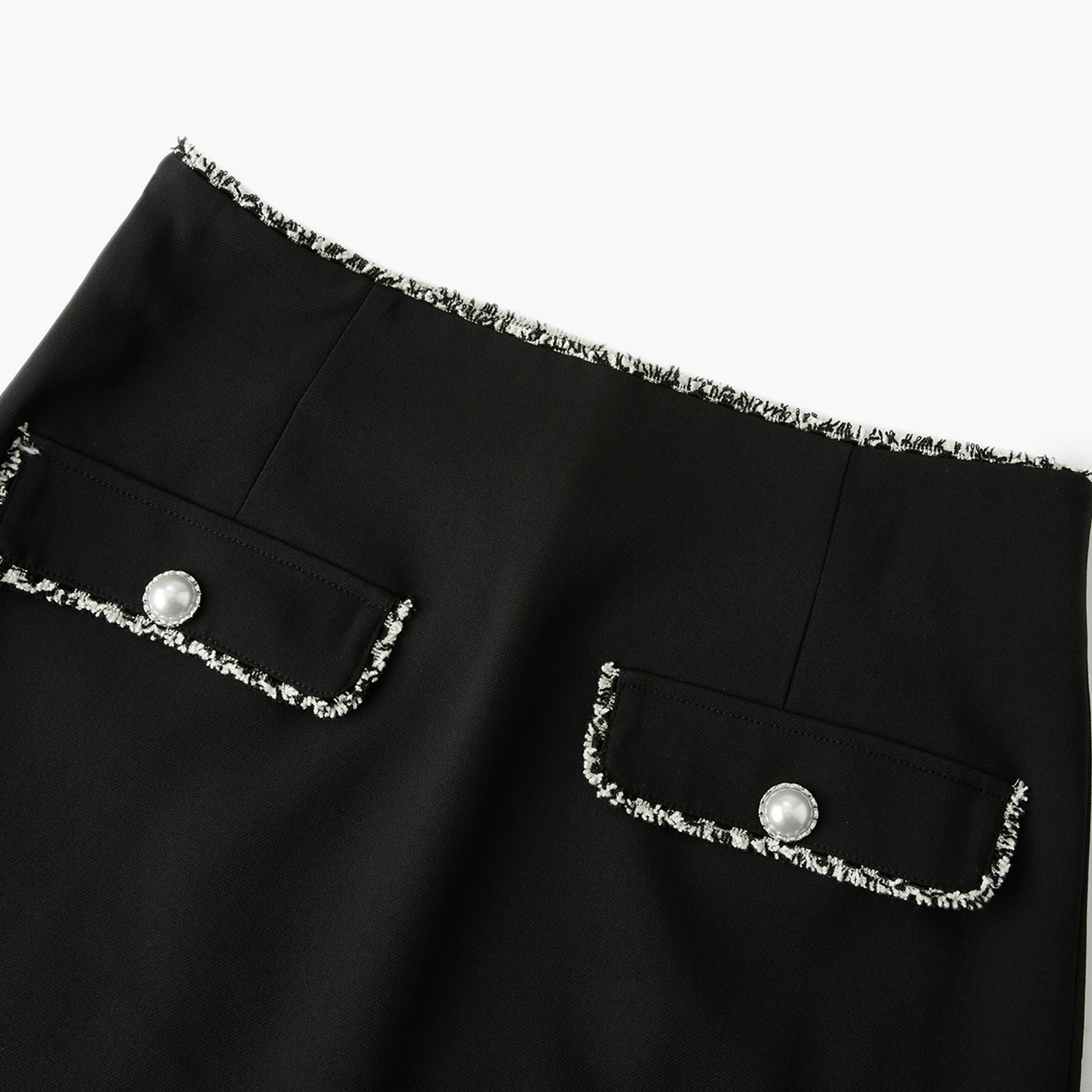新款 短款 时尚 饰修身 半身裙 仿珍珠扣对称翻袋装 爱居兔春季
