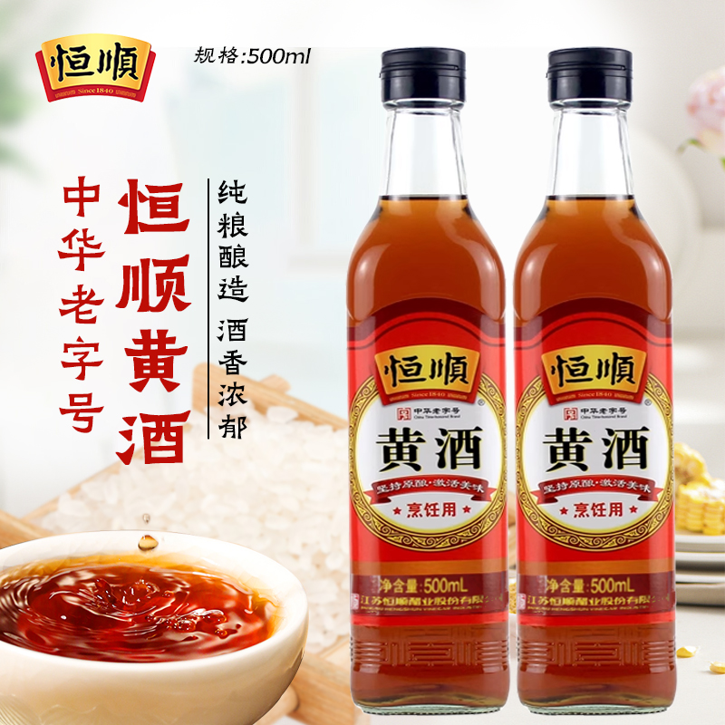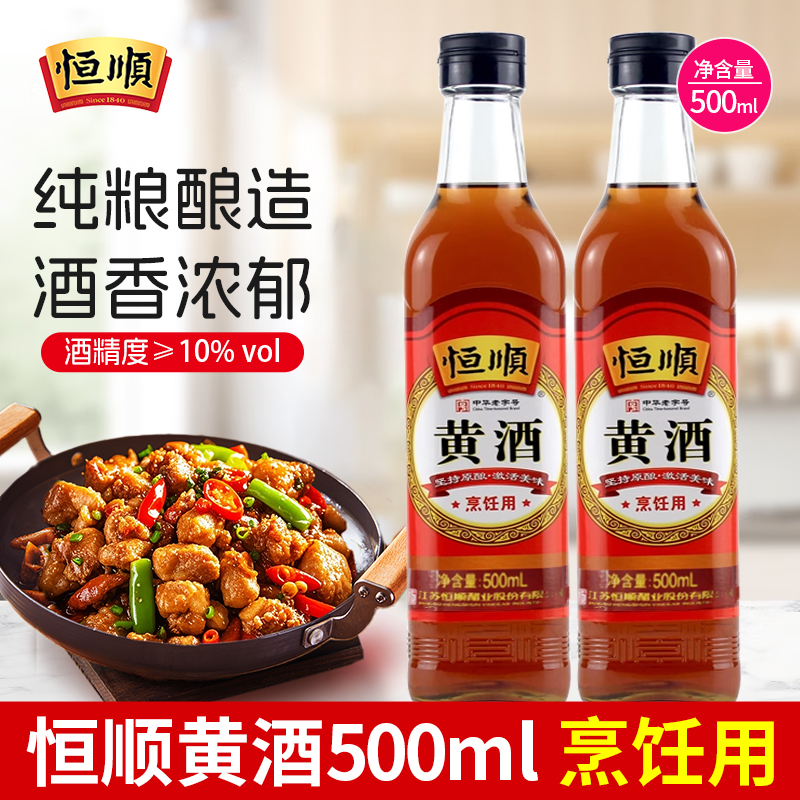 恒顺黄酒500ml 瓶泡阿胶去腥烹饪传统清爽型干黄酒厨房调味品