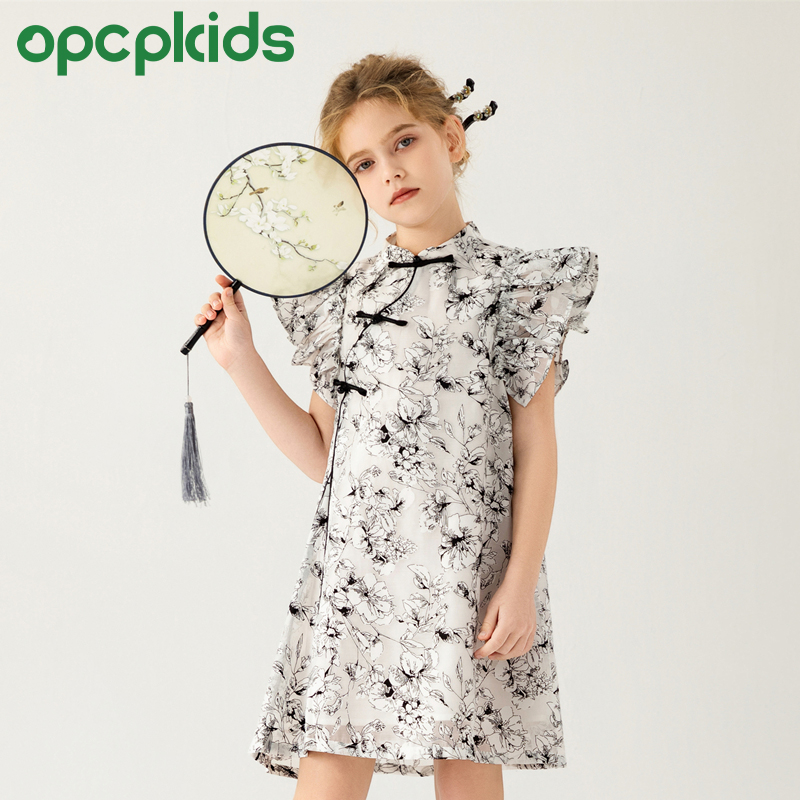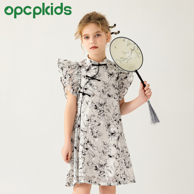 改良中大童公主裙 女童国风旗袍新中式 OPCP儿童连衣裙2025夏季 新款