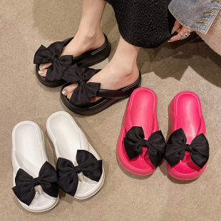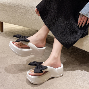 可爱蝴蝶结厚底增高女凉拖 外穿防滑海边沙滩鞋 韩版 人字拖女夏时尚