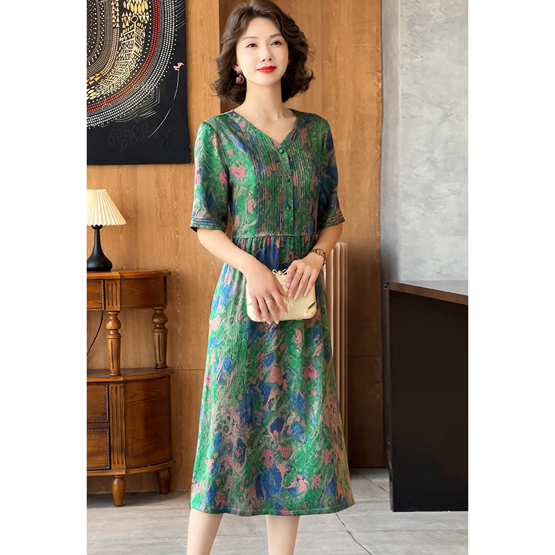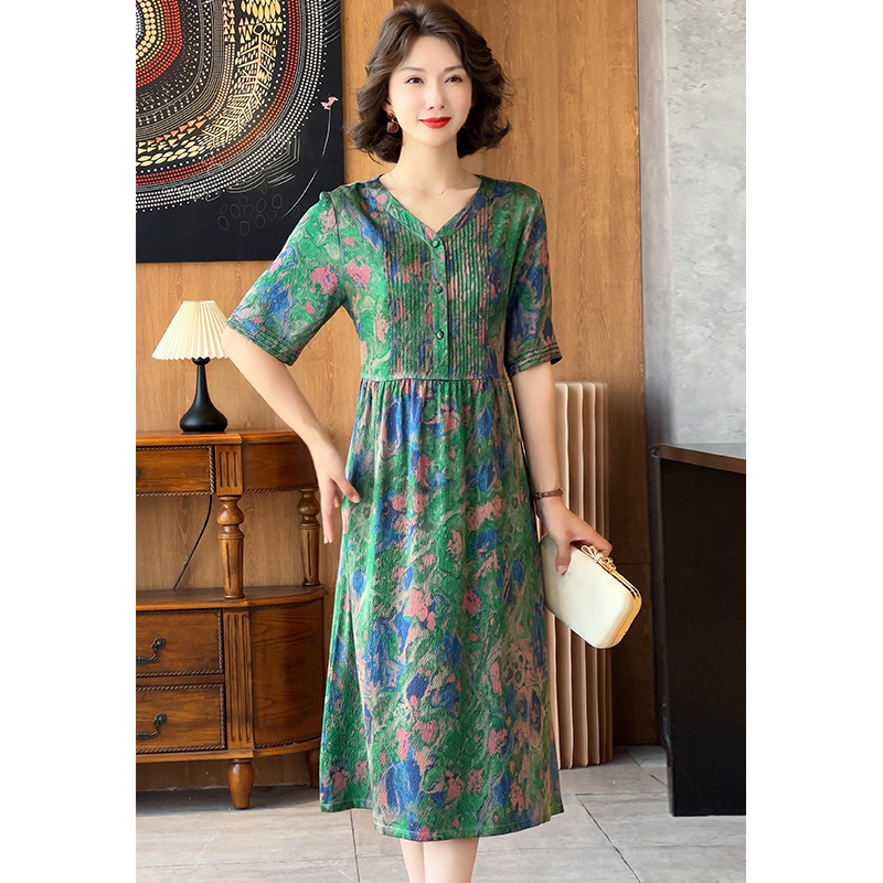 气质显瘦a字连衣裙 中长款 棉绸连衣裙女夏2025新款 人造棉纯色短袖