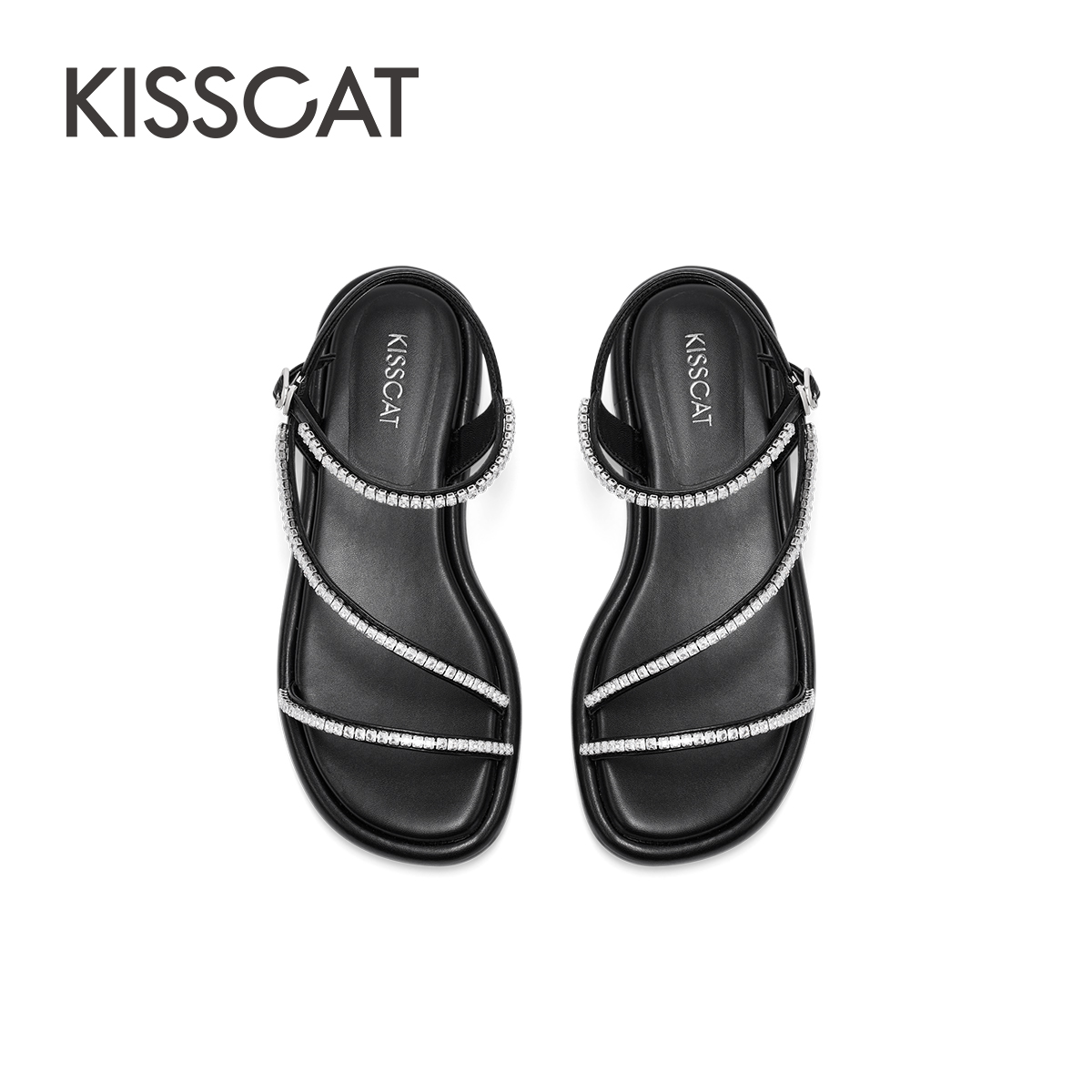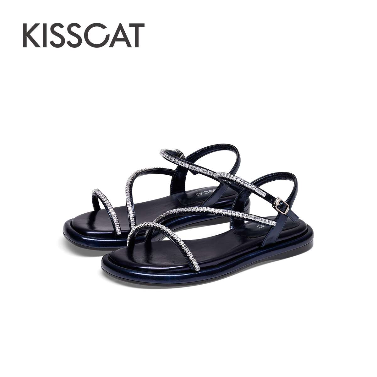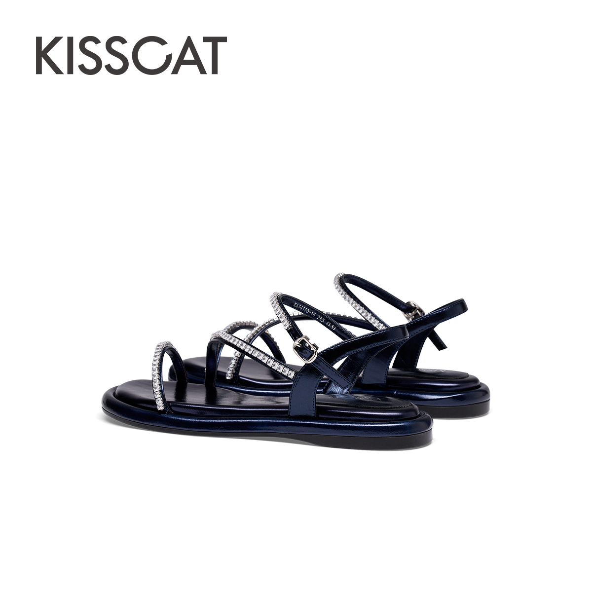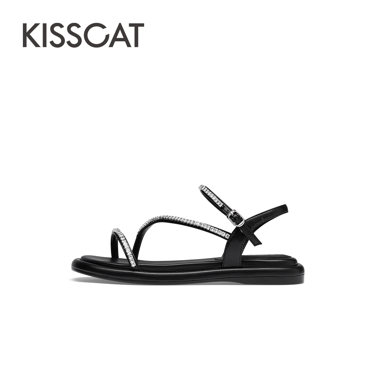 条带罗马凉鞋 KISSCAT接吻猫夏季 舒适休闲平底鞋 一字带凉鞋 法式