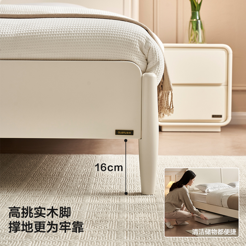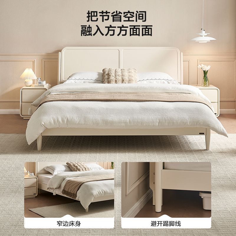 全友家居法式 主卧室实木床脚1.8m双人床 奶油风1米5单人床2025新款