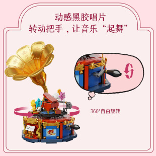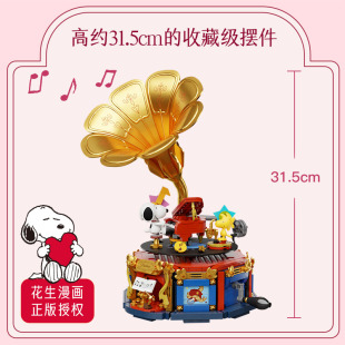 联名演奏派对留声机益智拼搭玩具 拼奇积木史努比正版 拼奇积木