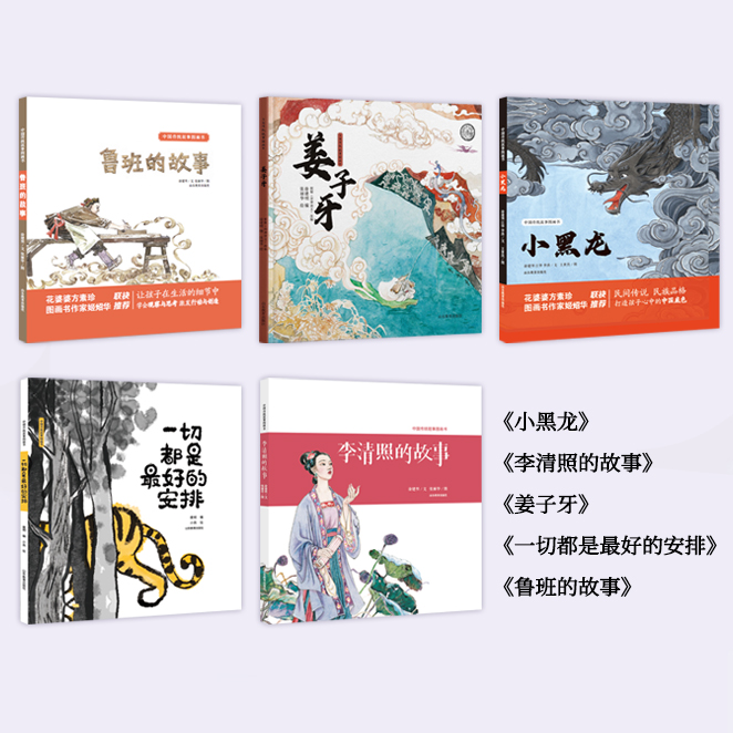 故事启迪智慧亲子阅读民间故事开启阅读启蒙一切都是最好 中国传统故事图画书宝藏儿童绘本5册小黑龙李清照鲁班姜子牙 安排 包邮
