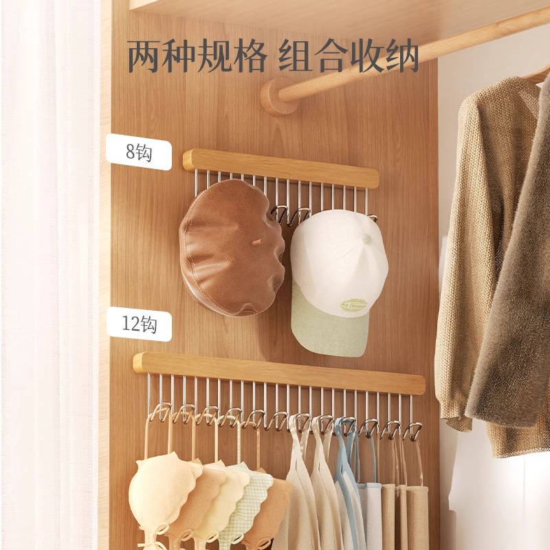 吊带挂钩衣架家用2024新款 内衣背心挂架实木 多功能波浪衣架抽拉式