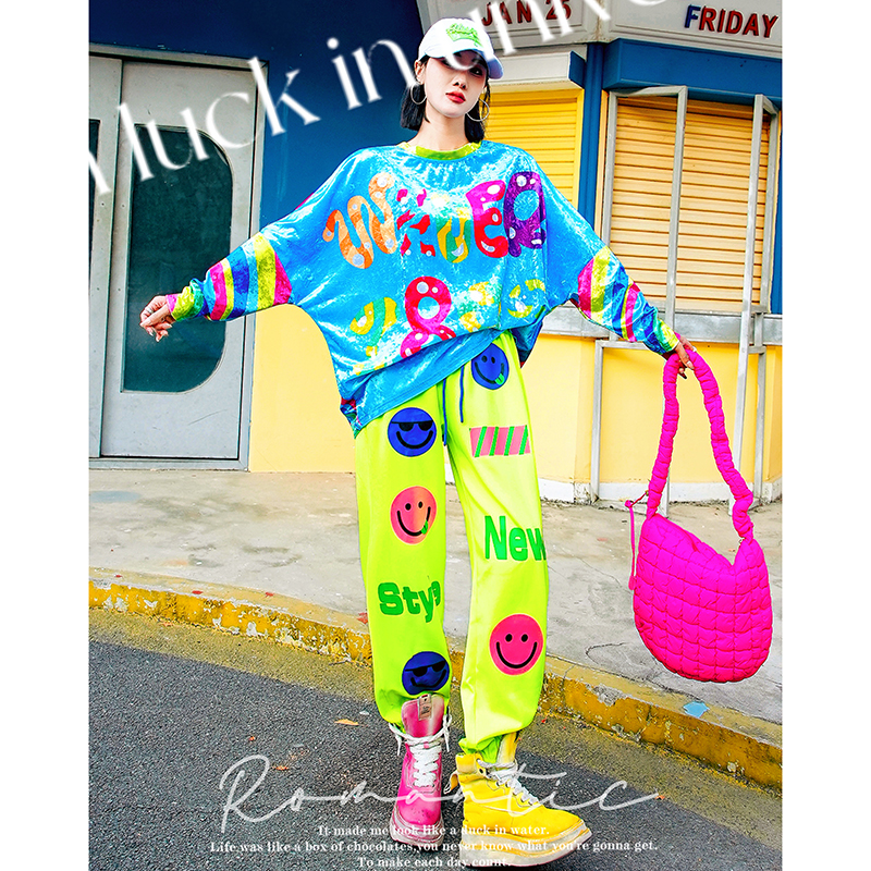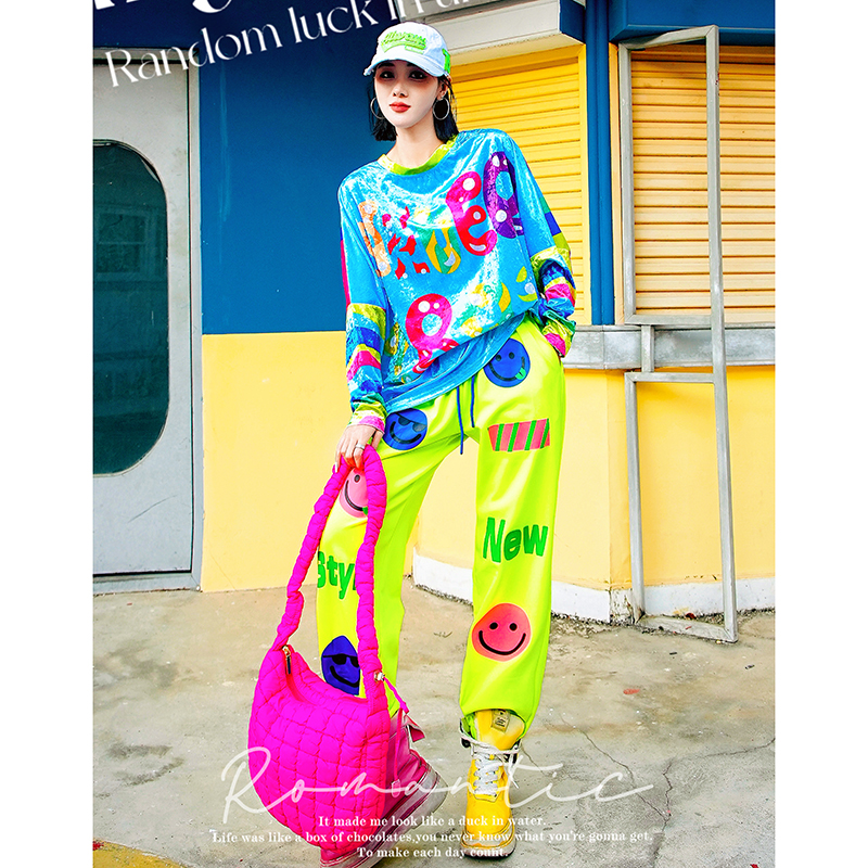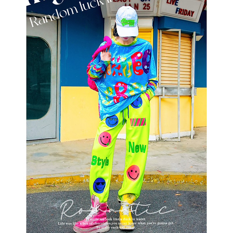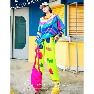 打底衫 原创潮牌撞色宽松蝙蝠袖 新款 YHAY彩色条纹字母休闲T恤春季
