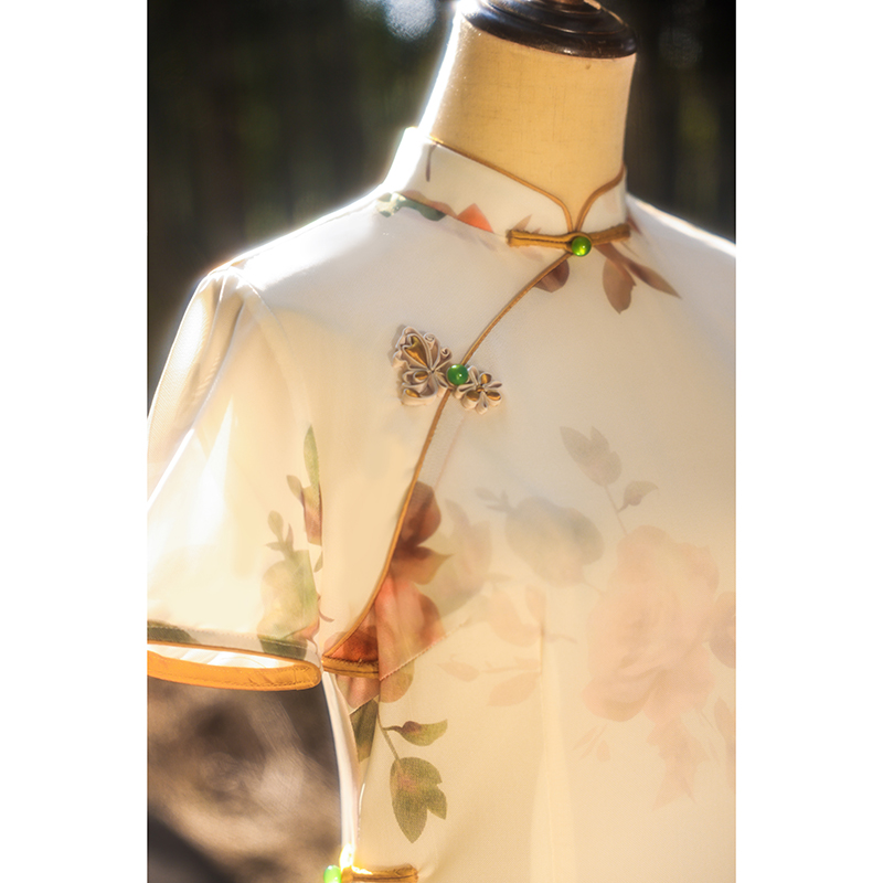 细语岁月 灰色蝴蝶结盘扣旗袍连衣裙开衫 秋季 新中式 女 新款 乔拉