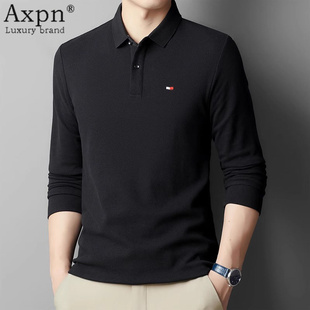 翻领打底上衣休闲商务白色polo衫 长袖 新款 2025春季 男上衣 t恤男士