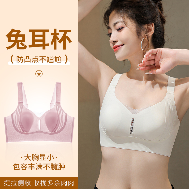 曼娜莎夏季 清凉无痕柔软舒适兔耳朵收副乳防下垂女文胸内衣 超薄款