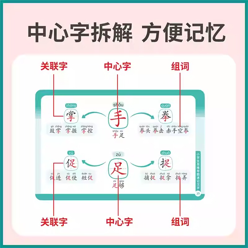 新版 2025思维导图速记汉字小学通用语文识字表励志贴人教版 儿童识字书幼儿认字识字大王 赠练习册 汉子 英语 小学速记汉字手卡
