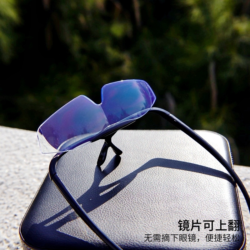 翻盖便携黑框老花眼镜 TV一体放大1.6倍眼镜看报阅读半框架老花镜