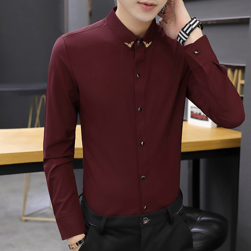 男士 男长袖 白衬衣 红豆含蚕丝莫代尔羊毛免烫抗皱衬衫 林更新同款