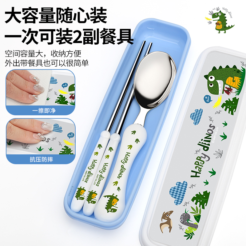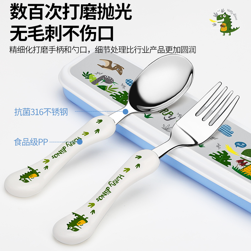 小学生餐具儿童勺子316不锈钢筷子套装 不锈钢儿童勺子吃饭叉勺盒
