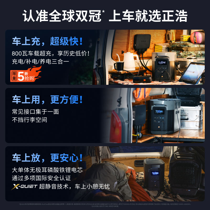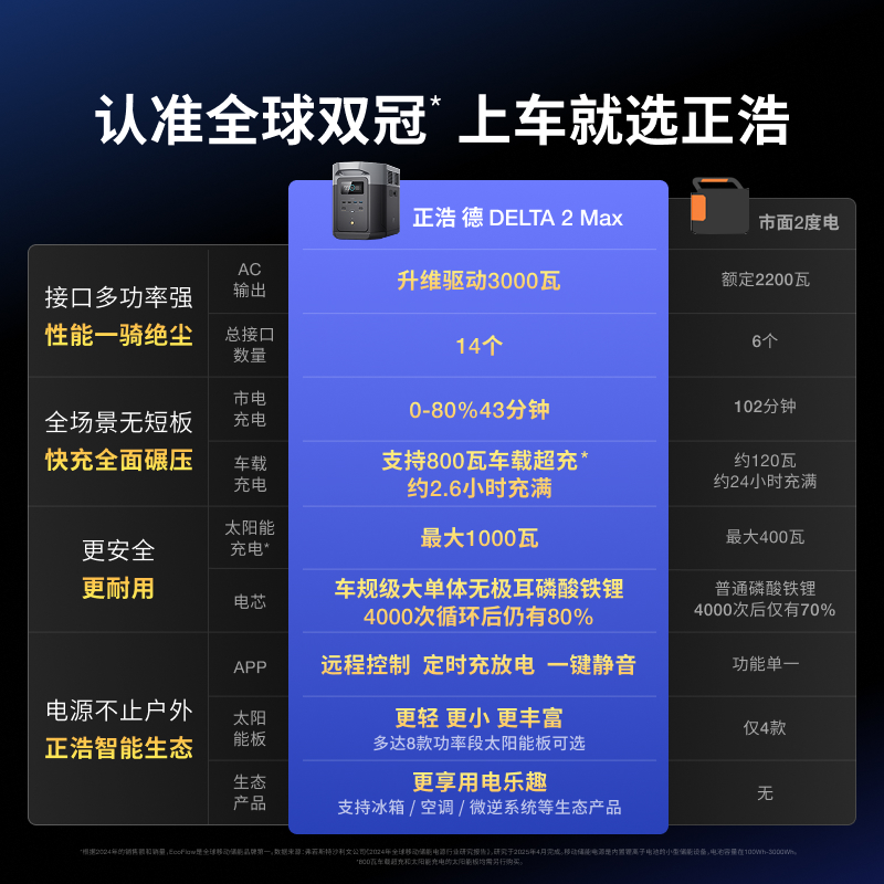 户外移动电源磷酸铁锂电芯储能自驾露营摆摊车载电源 旗舰2度电2400W大功率大容量 正浩EcoFlow 德DELTA2Max