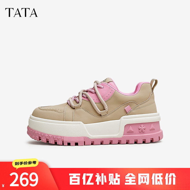 串珠休闲小白板鞋 复古薄底女新款 B2867CM5 美式 百丽跑道棒球德训鞋