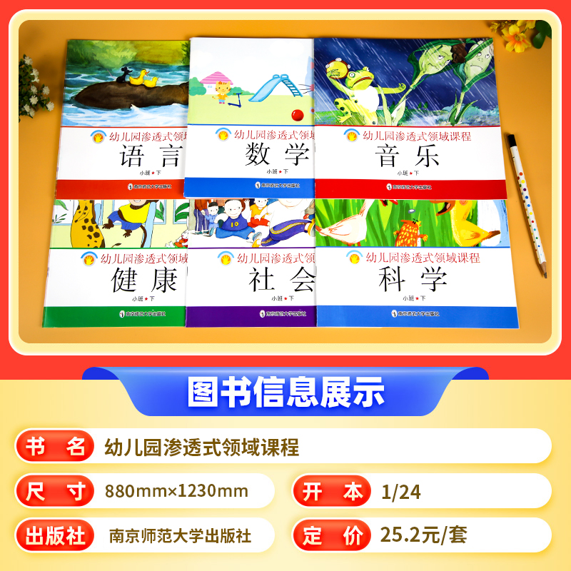 数学操作卡片五大领域 幼儿园渗透式 语言数学健康音乐社会科学美术全6册 大班中班小班托班上下册幼儿用书 南京师范大学 领域课程