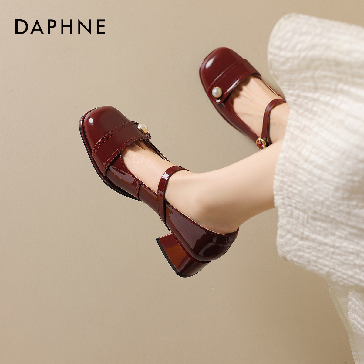 法式 玛丽珍鞋 女鞋 达芙妮红色单鞋 婚鞋 秋季 子中跟小皮鞋 女2025新款