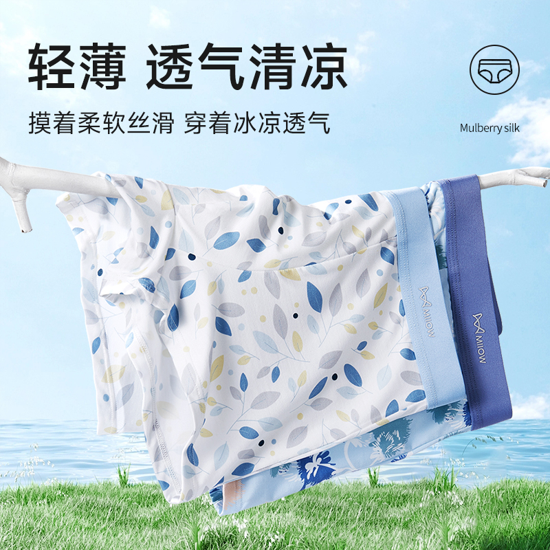 裤 抑菌內裆无痕透气凉感薄款 衩平角抗菌无感丝滑轻薄 冰丝内裤 男士