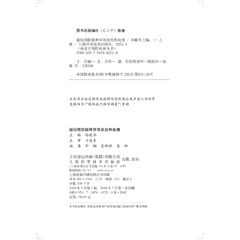 上海科学技术出版 正版 孙晓东 疑似预防接种异常反应和处理 社9787547865729 2024新书