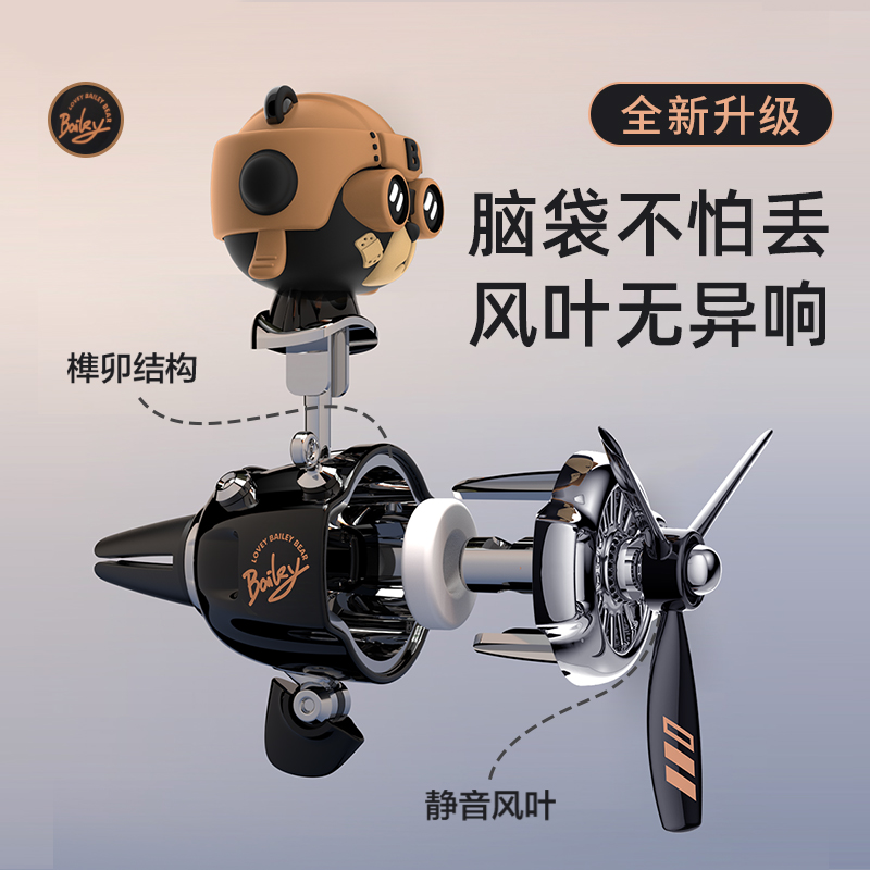 飞行员车载香薰出风口小风扇2025新款 饰螺旋桨摇头摆件 汽车空调装
