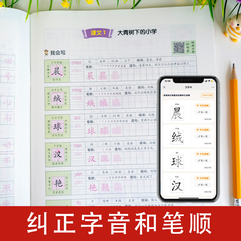 视频指导练字帖六年级上册同步练字帖部编人教版 视频讲解练字帖6年级上册生字练字帖笔画笔顺组词造句描红本听写词语默写积累开心