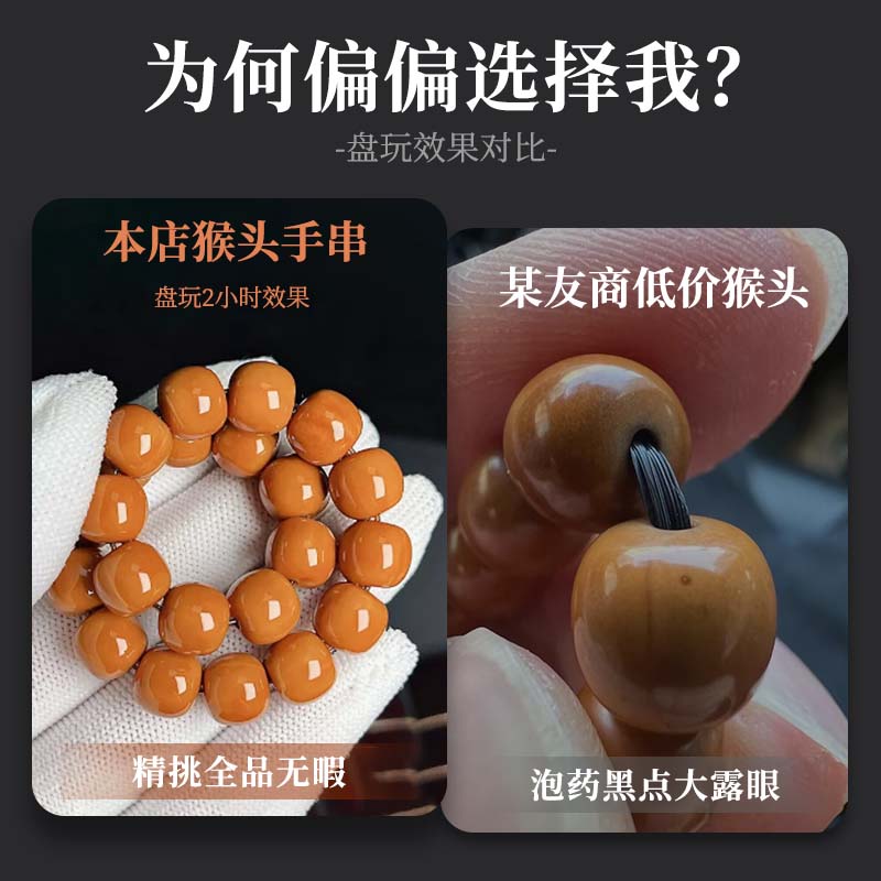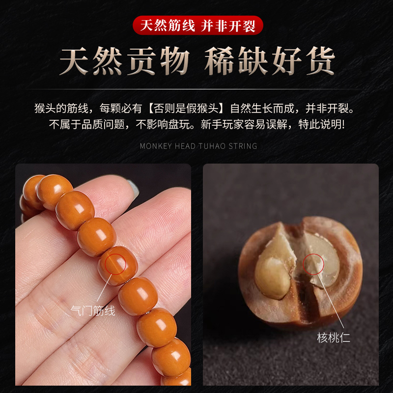 野生猴头手串正圆雕刻直切老型桶珠手捻原籽核桃京八棱男女手链