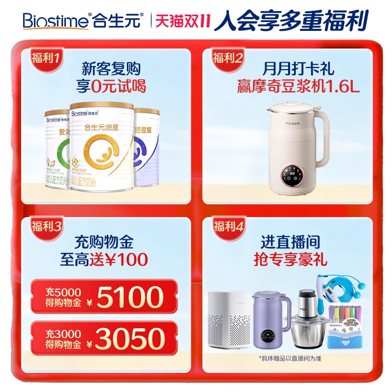 乳铁蛋白800g 儿童成长配方小学生奶粉金装 合生元 2罐 双11抢购