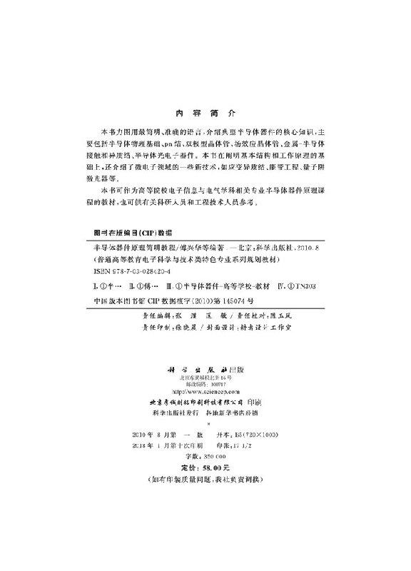 傅兴华 丁召 社 书 9787030284204书籍KX 科学出版 半导体器件原理简明教程 宁杨健 陈军