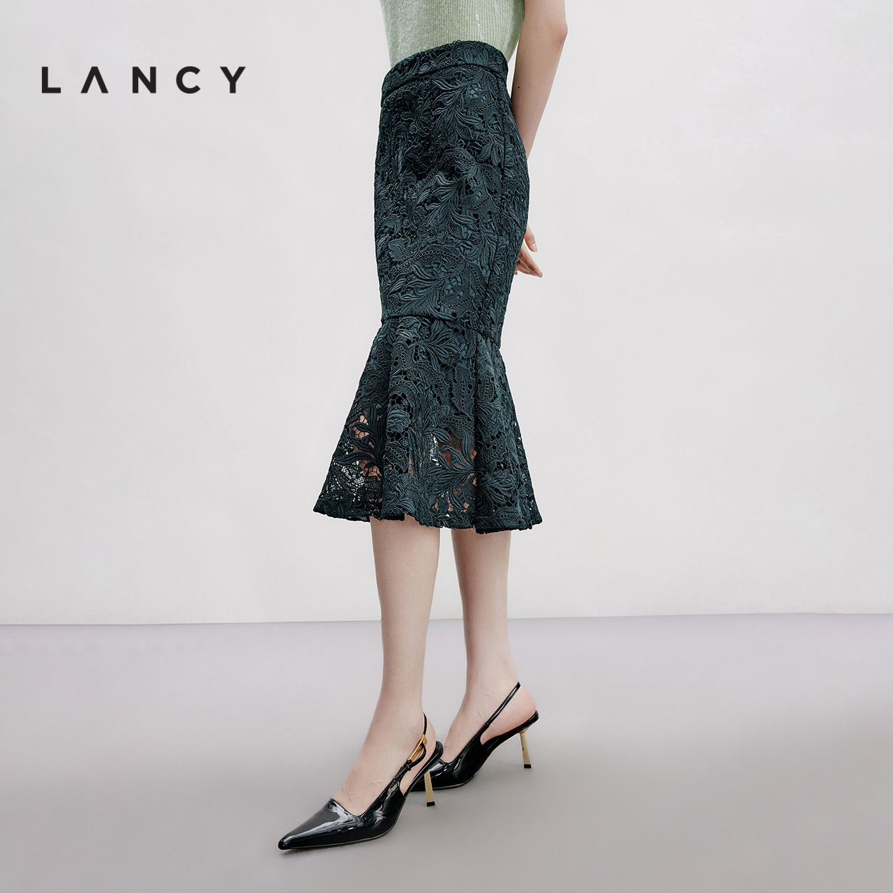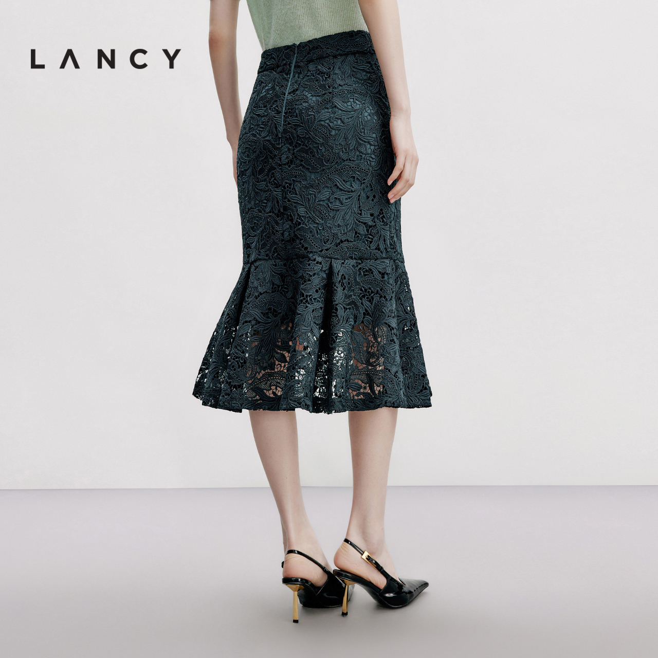 507358 下摆蕾丝拼接抽绳松紧腰半身裙女装 三福长裙2025秋季