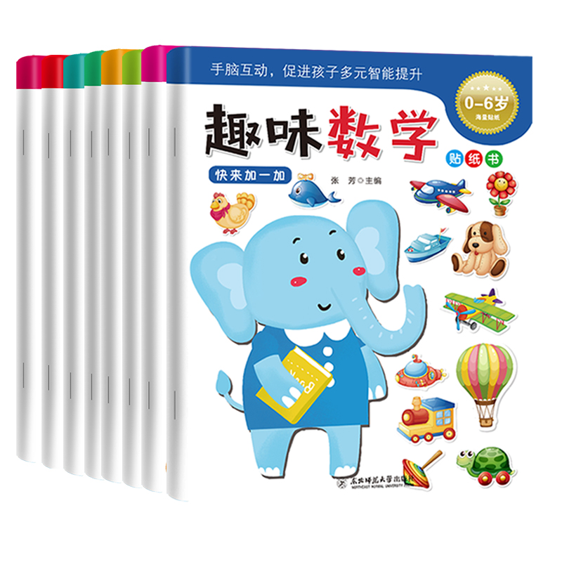 贴纸书2岁趣味数学贴贴画3岁阶梯数学益智游戏4岁儿童幼儿数学启蒙5岁宝宝幼儿园书籍6岁专注力贴贴书训练教材蒙氏数学小红帆