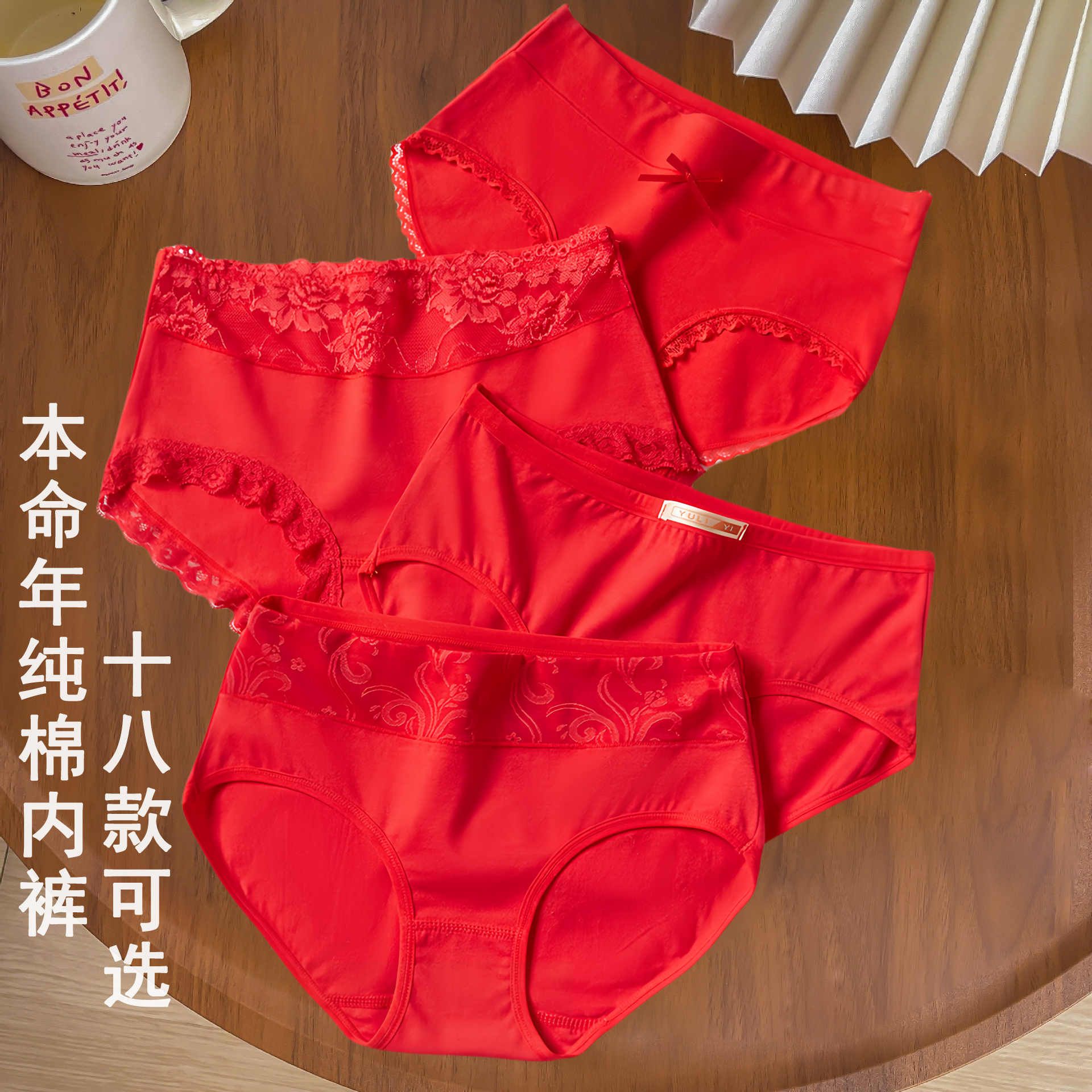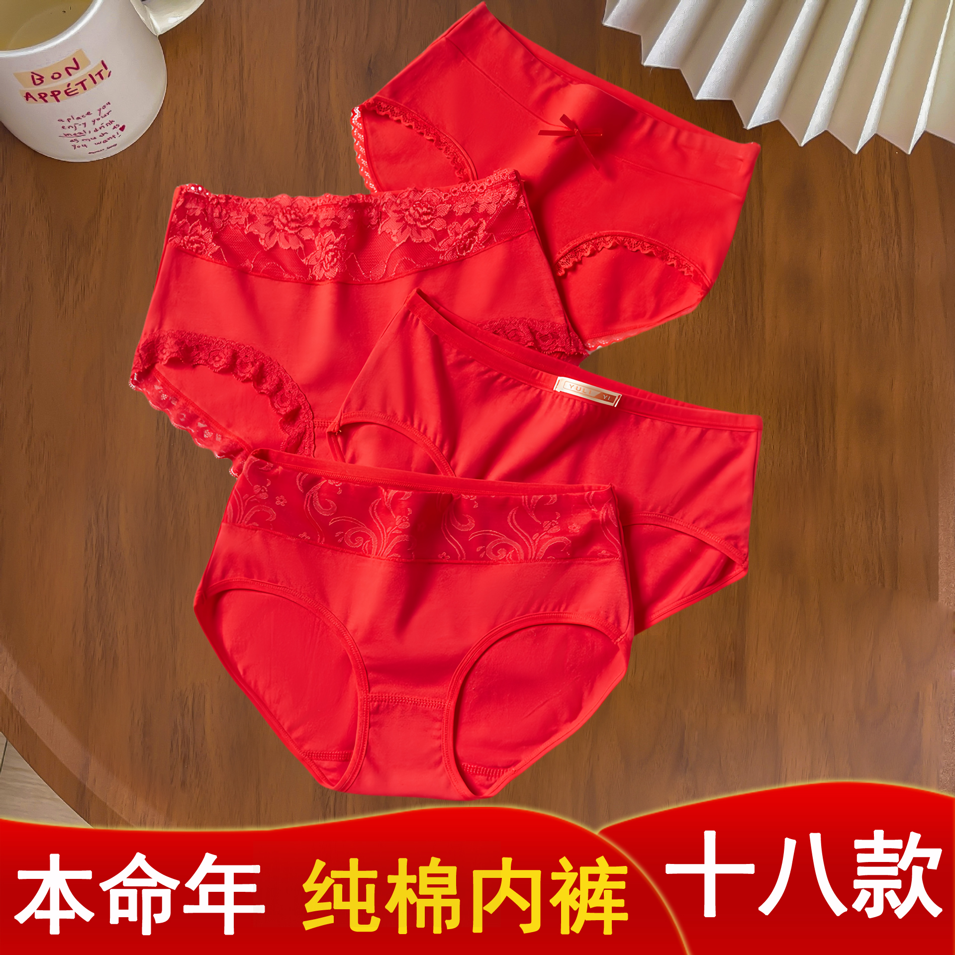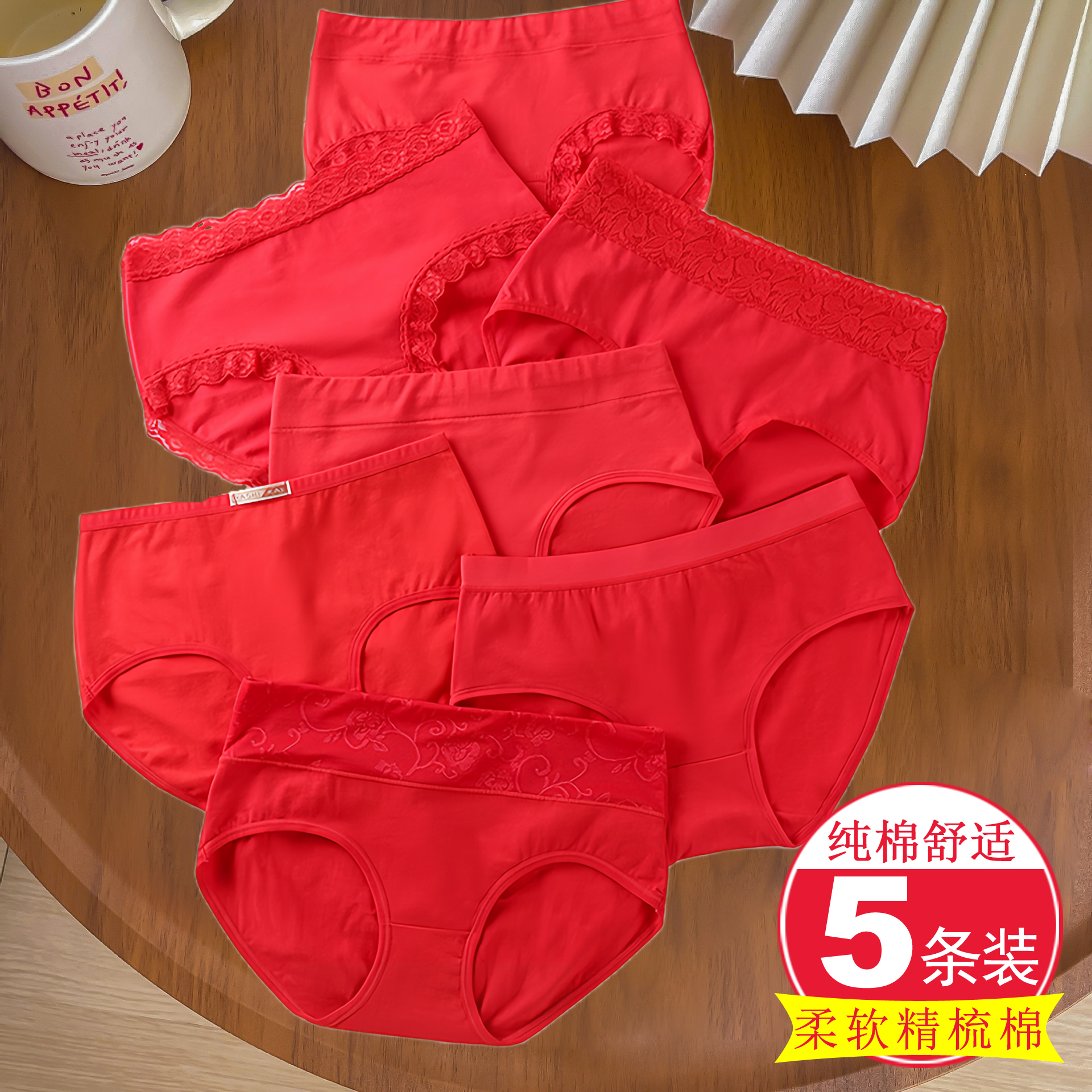 结婚喜庆鸿运本命年中腰内裤 女大红色舒适亲肤透气包臀女士三角裤