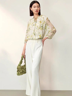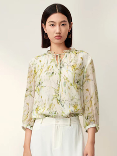 花边V领印花连衣裙上衣系列立领系带长裙6A级真丝乔其纱桑蚕丝女