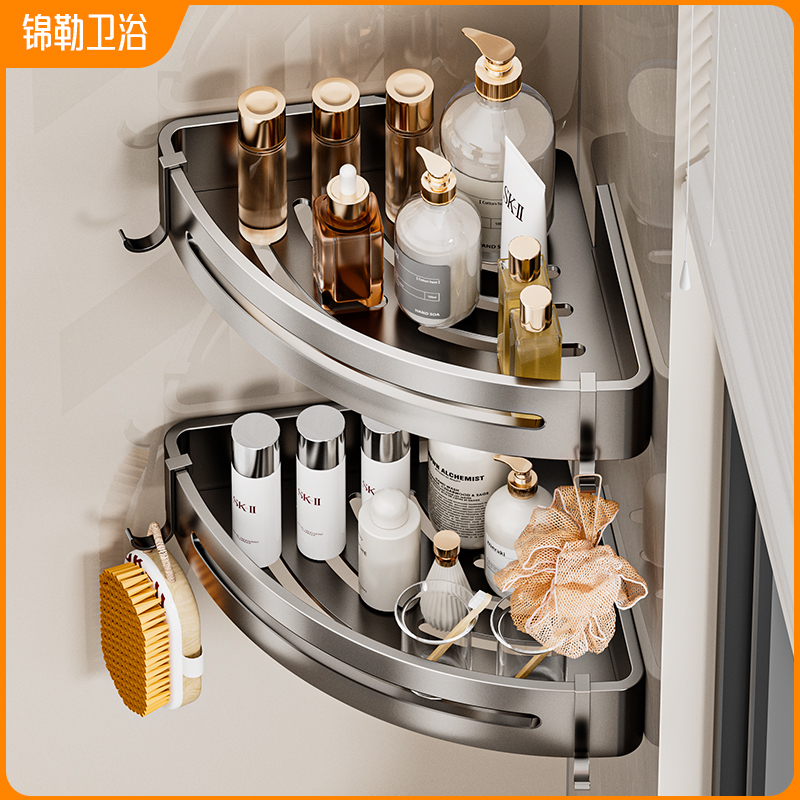 枪灰卫生间置物架免打孔浴室三角架壁挂式 转角厕所洗澡间收纳架子