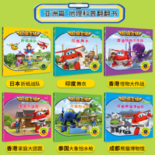 超级飞侠一起看世界翻翻故事书一起看世界亚洲欧洲美洲 6周岁幼儿园儿童绘本卡通动漫漫画亲子阅读动画书籍 飞侠正版