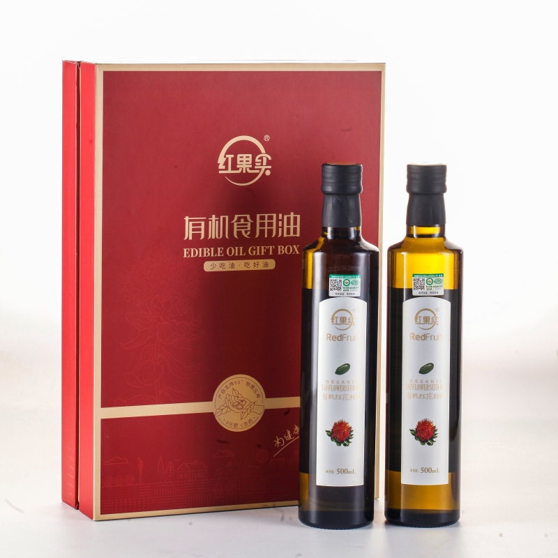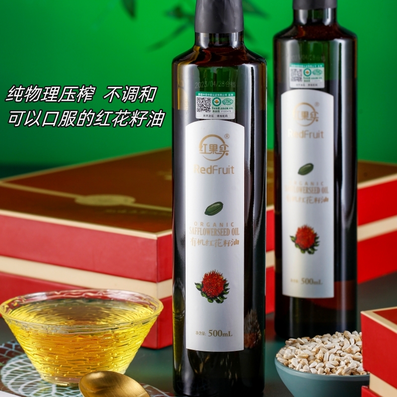 一级冷榨新疆红花籽油官方旗舰店 有机红花籽油500ml 有机认证