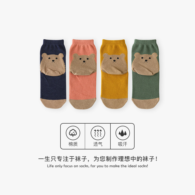 Tabio儿童袜子可爱小熊短袜透气船袜男童女童宝宝小孩秋冬